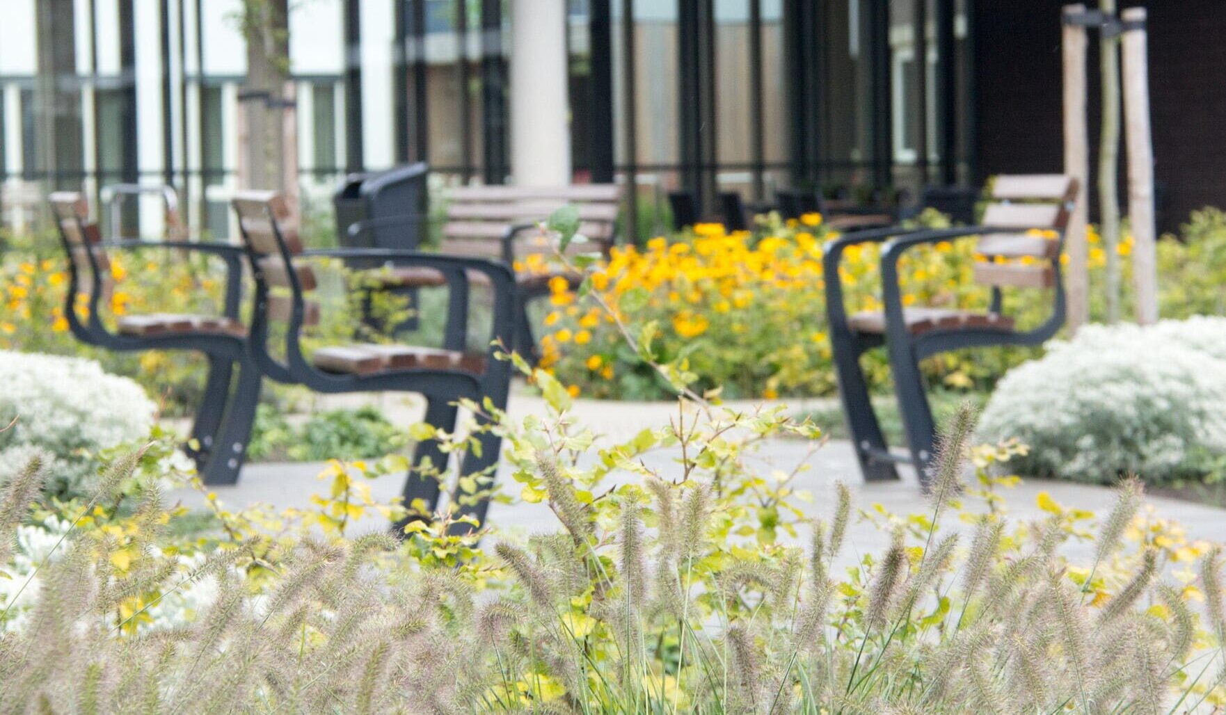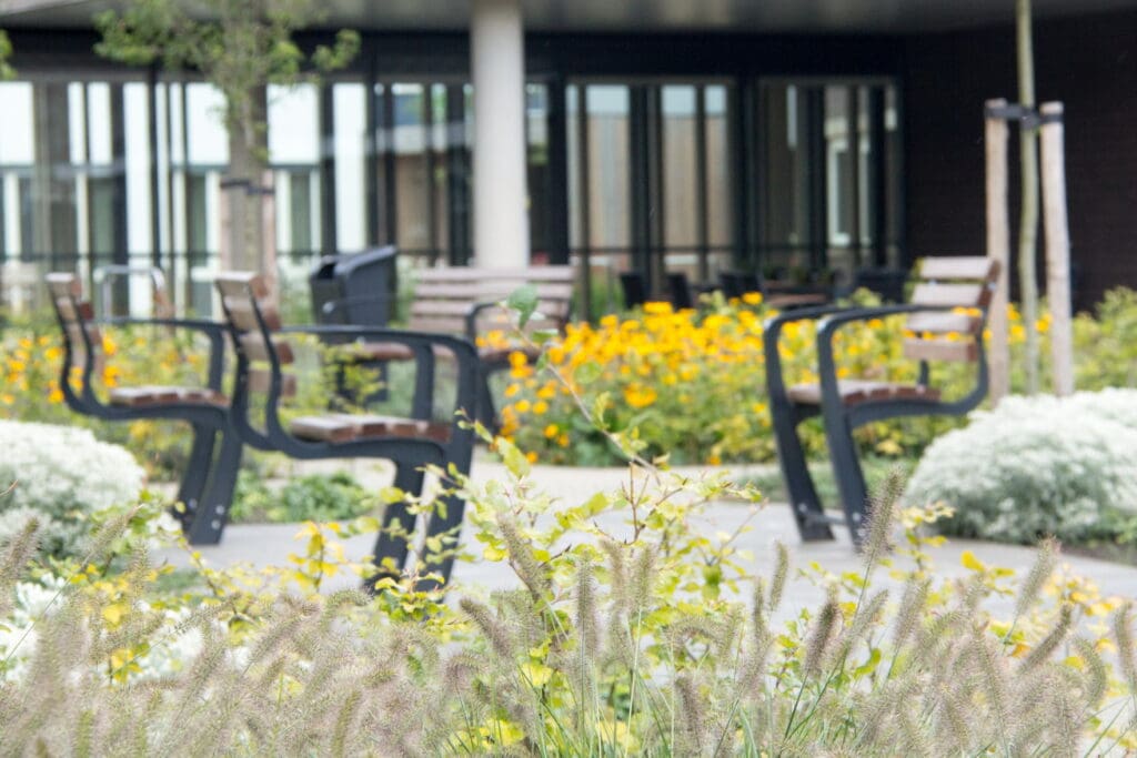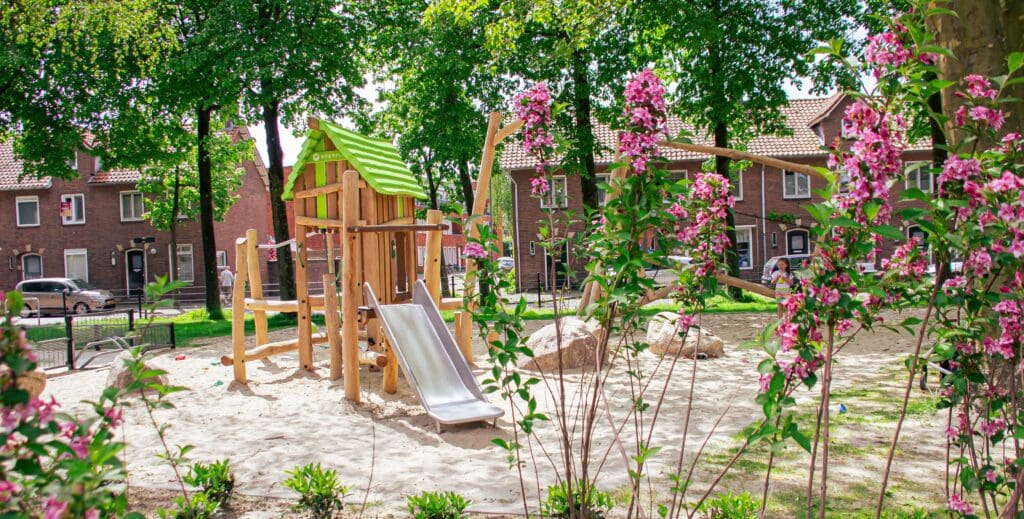 Frederike’s interesse voor alles wat groeit en bloeit heeft ze van huis uit meegekregen. Haar ouders waren biologen en ze trok er vaak met haar moeder op uit om planten en bloemen te bestuderen. Toen ze later een opleiding moest kiezen, wilde ze graag iets doen waarin ze haar creativiteit kon combineren met haar liefde voor de natuur. Zo kwam ze terecht bij de opleiding Tuin- en Landschapsinrichting. Daar legde ze een stevige basis, maar leerde het meest in de praktijk door te doen, te observeren en te leren van ervaren collega’s. Met zoveel kennis zou je misschien denken dat Frederike inmiddels alles weet, maar volgens haar is dat juist niet zo. “Hoe meer je leert over beplanting, hoe duidelijker wordt dat er nog zóveel te ontdekken valt,” vertelt ze. “Om mijn kennis up-to-date te houden, ben ik o.a. lid van een vereniging van kwekers en plantenliefhebbers de KVBC die artikelen en inzichten delen over de nieuwste ontwikkelingen in de branche.” Haar liefde voor beplanting houdt niet op na werktijd. “We kochten ons huis juist vanwege de grote tuin die erbij zat. Het huis zelf was eigenlijk een opknapper en stelde niet zoveel voor,” zegt ze lachend. De natuur om haar heen maakt haar zichtbaar blij; daar haalt ze elke dag inspiratie en energie uit. Binnen het landschapsontwerpteam is iedereen in staat om een beplantingsplan te maken, maar vaak worden de collega’s daarbij ondersteund door Frederike. Zij denkt mee over de soorten die het best gebruikt kunnen worden en adviseert bij specifieke keuzes. “Laatst vertelde een collega dat hij graag klimplanten in zijn ontwerp wilde opnemen, maar er niet uitkwam welke soort geschikt was. We kunnen natuurlijk absoluut geen giftige planten op een speelplek toepassen, met het risico dat kinderen die in hun mond stoppen. Ik kon degene al snel helpen met een passende oplossing,” vertelt ze. Op oudere speelplekken zie je vaak slechts een paar toestellen staan, soms met een grasveldje en een paar doeltjes. Gelukkig is dat verleden tijd. Bij een goede speelplek komt veel meer kijken dan alleen het plaatsen van toestellen. “De herinneringen die ik heb aan spelen in mijn jeugd gaan vooral over spelen in de natuur: hutten bouwen en klimmen in bomen,” vertelt Frederike. “Juist de beplanting zorgt ervoor dat een natuurlijke speelplek echt tot leven komt.” Vooral in versteende omgevingen, zoals steden, kan een groene speelplek enorm veel betekenen voor de omgeving. Uit onderzoek van het RIVM (2022) blijkt dat groen in de leefomgeving een positieve invloed heeft op zowel de fysieke als de mentale gezondheid. Groen kan de schadelijke effecten van luchtvervuiling en hitte verminderen. Daarnaast helpt het mensen herstellen, omdat het stress vermindert en het concentratievermogen verbetert. Bovendien nodigt een groene omgeving uit tot meer beweging en sociale interactie. Dat bloemen en planten dus niet enkel voor de sier zijn, is nu wel duidelijk. Maar wist je dat ze ook daadwerkelijk bijdragen aan de ontwikkeling van kinderen. “Door te voelen, ruiken, zien en horen doen kinderen zintuiglijke ervaringen op die belangrijk zijn voor hun motorische en cognitieve groei”, vertelt Frederike. “Het contact met planten stimuleert nieuwsgierigheid en onderzoekend leren: kinderen ontdekken insecten, zien hoe planten groeien en leren spelenderwijs over ecosystemen en seizoenen.” Groene speelplekken nodigen daarnaast uit tot gevarieerd en actief spel, wat de motoriek, creativiteit en sociale vaardigheden versterkt. Ook bevordert buitenspelen in een groene omgeving de concentratie en vermindert het stress, waardoor kinderen zich beter kunnen ontwikkelen. Eerder in de tekst benoemden we al dat er op een speelplek absoluut geen giftige planten mogen staan. Maar dat is natuurlijk niet het enige waar we rekening mee houden. Bij het maken van een beplantingsplan letten onze landschapsontwerpers op verschillende aspecten: Inheemse beplanting bestaat uit bloemen en planten die van oorsprong in Nederland voorkomen of hier al heel lang groeien. Aan deze soorten is niet door kwekers gesleuteld of gekruist. Omdat deze planten al eeuwen onderdeel zijn van onze natuur, hebben ze allemaal hun eigen rol binnen het ecosysteem. Dieren en insecten zijn vaak direct afhankelijk van deze soorten om te kunnen overleven. Frederike noemt als voorbeeld de eikenboom: “Een Nederlandse eikenboom, zoals de Zomereik, is een belangrijke voedselbron en schuilplaats voor honderden soorten insecten, schimmels, vogels en zoogdieren. Als je kijkt naar een Amerikaanse eikenboom, dan zijn dat er veel minder en draagt die boom daardoor minder bij aan het ecosysteem,” legt ze uit. Betekent dat dat uitheemse planten slecht zijn? “Nee, zeker niet! De inheemse planten zijn inderdaad beter voor het ecosysteem in Nederland, maar er zijn ook andere overwegingen. Zo kan het voor een school bijvoorbeeld belangrijk zijn om planten te gebruiken met verschillende geuren en structuren, zodat leerlingen hier op een leerzame manier mee in aanraking komen. In een speelplek in de stad ligt de nadruk juist vaker op bloemen die lang bloeien, zodat bezoekers het hele seizoen kunnen genieten van kleur en levendigheid. Dit zijn dan vaak uitheemse of speciaal gekweekte soorten. Daarom is het belangrijk om goed te kijken naar het doel van de speelplek.” Volgens Frederike zijn er op het gebied van beplanting verschillende trends en ontwikkelingen gaande. Deze spelen een steeds grotere rol bij het ontwerpen van groene en duurzame speelplekken: De zomers in Nederland worden steeds warmer. Waar we vroeger slechts een paar warme zomerdagen hadden, krijgen we nu regelmatig te maken met hittegolven die langer aanhouden en vaker voorkomen. Ons klimaat verandert, en dat merken we allemaal. “Beplanting op speelplekken kan hierin een verrassend effectieve rol spelen. Door het toevoegen van bomen en struiken ontstaan er meer schaduwrijke plekken,” vertelt Frederike. “Daarnaast is gras als ondergrond een