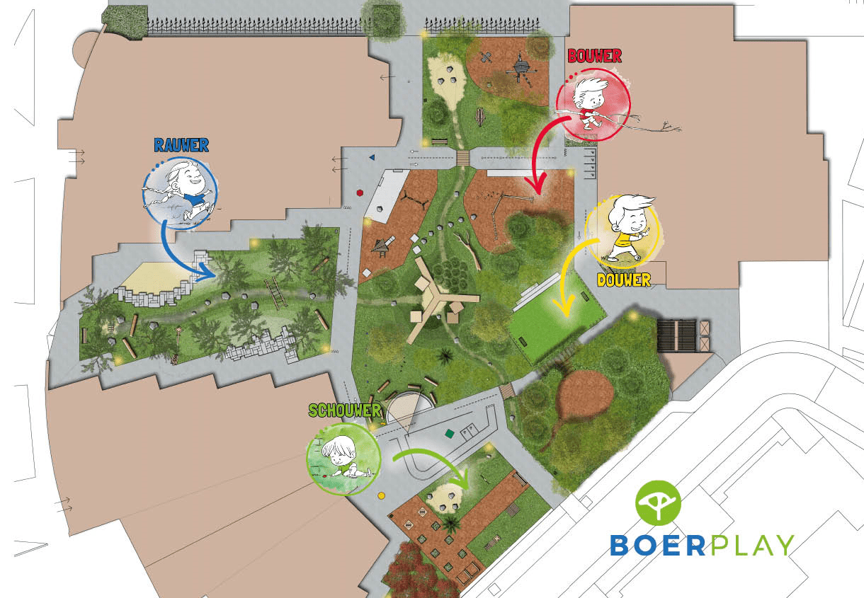 Ieder kind is anders, de één houdt van hutten bouwen, terwijl de ander wil rennen en glijden. We onderscheiden hierin vier speltypen, of ook wel de rauwers, douwers, bouwers en schouwers genoemd, die wij beschrijven in onze visie. Wanneer er voor ieder kind een plek is in het speellandschap kunnen ze zich allemaal op hun gemak voelen.