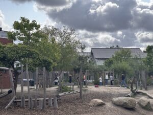 Het laat zien dat het plein uitnodigt tot vrij spel en creatief gebruik. Dankzij de variatie in hoogte, natuurlijke materialen en open inrichting voelt het plein voor kinderen van alle leeftijden als hun eigen plek. Er is geen moment van de dag waarop een deel van het plein ongebruikt blijft.