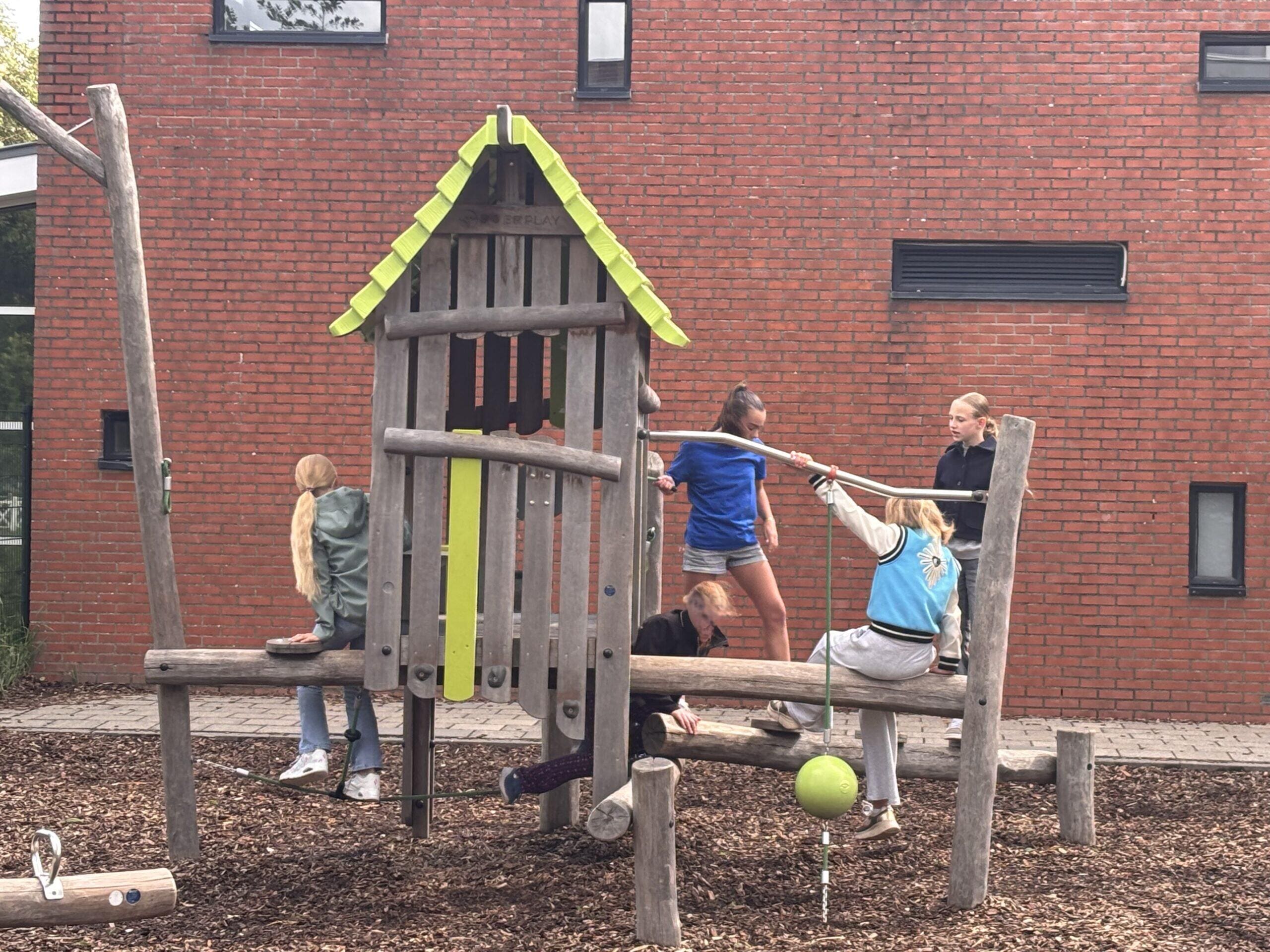 Het laat zien dat het plein uitnodigt tot vrij spel en creatief gebruik. Dankzij de variatie in hoogte, natuurlijke materialen en open inrichting voelt het plein voor kinderen van alle leeftijden als hun eigen plek. Er is geen moment van de dag waarop een deel van het plein ongebruikt blijft.