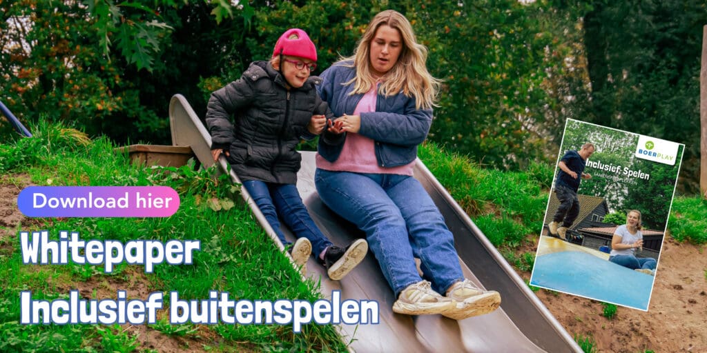 Toegankelijkheid gaat over de fysieke ruimte: kun je met een rolstoel het terrein op? Zijn de toestellen bereikbaar voor iemand die slecht ter been is? Of zijn er duidelijke routes voor iemand met een visuele beperking? Dit is stap één. Zeker belangrijk, maar als het daar stopt blijven we steken in het idee dat ‘er zijn’ genoeg is. Want een kind dat alleen maar kan toekijken terwijl de rest speelt, doet niet écht mee. Echt meedoen betekent: kunnen spelen op je eigen manier. Niet elk kind houdt van drukte of van fysieke uitdagingen. Sommige kinderen hebben behoefte aan structuur, rust, overzicht of duidelijke prikkels. Of juist aan samenwerking en sociaal contact. En sommige kinderen, bijvoorbeeld met autisme, vinden het lastig om direct deel te nemen aan spontaan groepsspel , hebben baat bij voorspelbaarheid. Een speelplek kan technisch perfect toegankelijk zijn. Toch voel je je buitengesloten als je je er niet welkom voelt of geen plek vindt in het spel van anderen. Inclusie is dus net zo goed een kwestie van sfeer, cultuur en sociale veiligheid. Wat kinderen in de speeltuin leren, nemen ze mee naar school, naar de sportclub en later naar hun werk. Als we willen bouwen aan een inclusieve samenleving waarin verschillen geen belemmering, maar een verrijking zijn, begint dat in de speeltuin. Want jong geleerd is oud gedaan. Hier leren kinderen dat iedereen anders is en dat dat oké is. Dat lukt alleen wanneer álle kinderen kunnen meedoen. Als kinderen nooit spelen met leeftijdsgenootjes met een beperking, is het logisch dat ze hen later als ‘anders’ zien. Niet omdat ze dat bewust zo bedoelen, maar omdat ze het niet anders gewend zijn. Een speelplek waar iedereen welkom is laat kinderen juist wél opgroeien met verschillen. Het laat ze ervaren dat verschillen normaal en zelfs waardevol zijn en een kind meer is dan zijn handicap. Zo wordt de speeltuin een oefenplaats voor het echte leven. Bij BOERplay geloven we dat samenspelen geen luxe of extraatje is, maar de standaard. En dat vraagt om meer dan wat aanpassingen in het ontwerp. Het vraagt om een fundamenteel andere kijk op buitenspelen, op wat kinderen nodig hebben en op wat het betekent om écht mee te kunnen doen. Want pas als ieder kind zichzelf kan zijn in het spel, en zich gezien voelt, is een speelplek écht inclusief. Meer weten over inclusief spelen of hoe we jouw speelplek kunnen omtoveren tot een samenspeelplek? Lees de whitepaper. Toegankelijkheid is de basis, geen eindstation