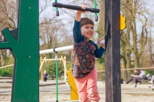 Klimmen en klauteren is een kwestie van durven. Als het lukt, geeft het je kind veel zelfvertrouwen. Vindt je kind het spannend? Een beetje aanmoedigen helpt vaak en je kind volgt al snel het voorbeeld van jou of van andere kinderen. |
