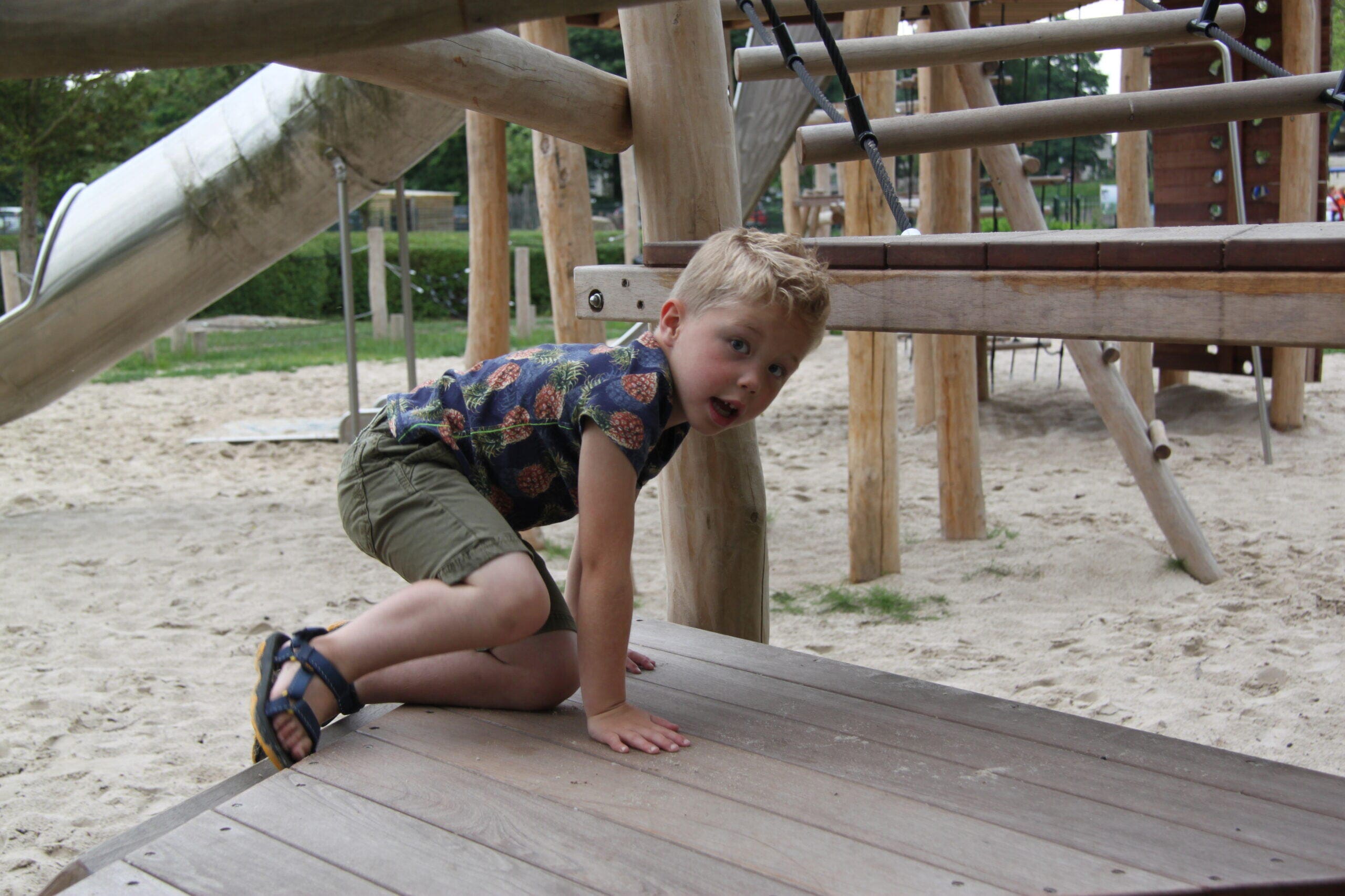 Tim, 5 jaar: ‘Dit vind ik de mooiste, die heeft twee glijbanen en is heel groot. Ook omdat je in de huisjes kan klimmen. Het klimrek is leuk, de brug lijkt me saai.’
