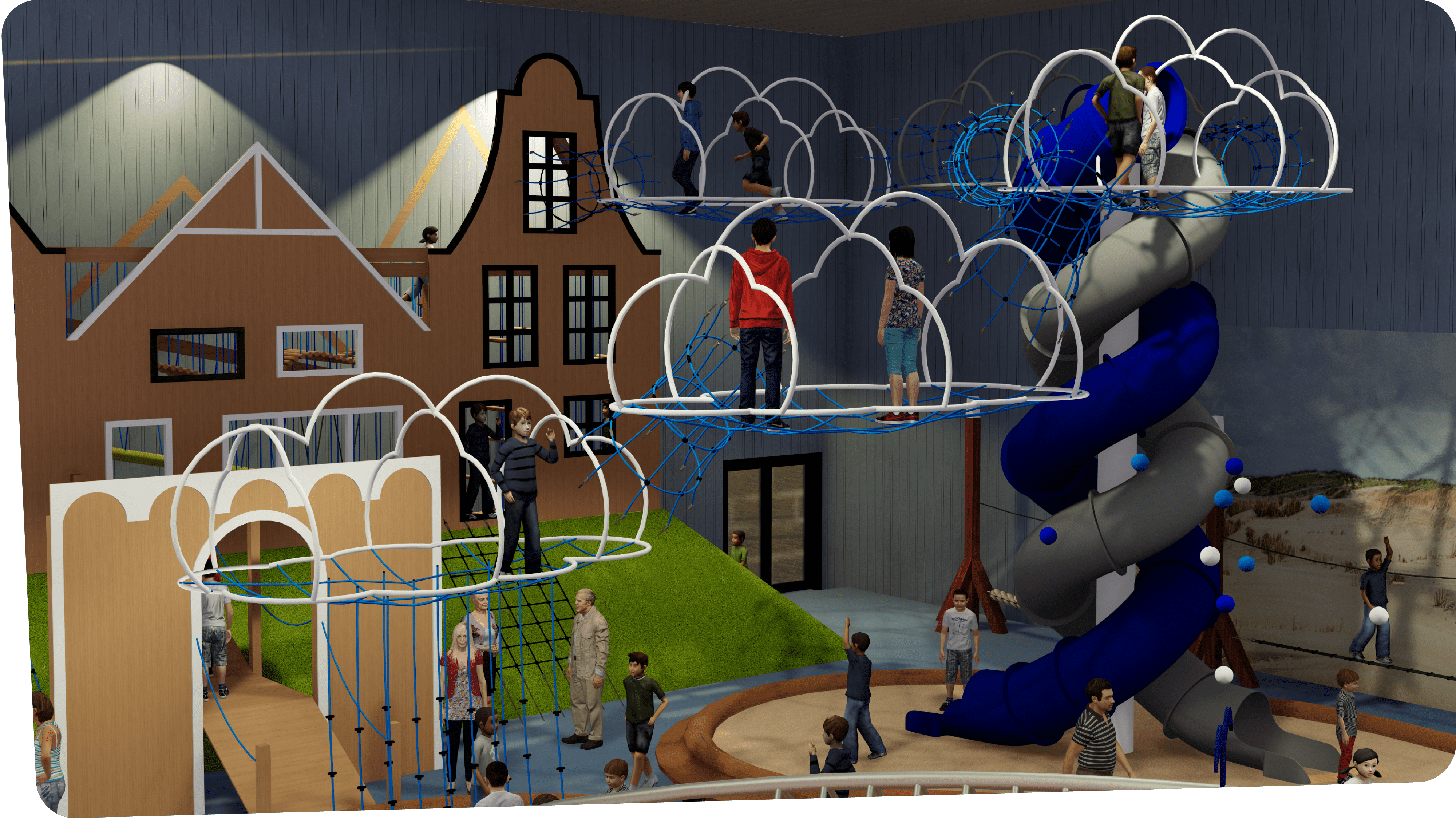 Services als horeca, supermarkt, informatievoorziening en entertainment worden vaak binnen aangeboden. Deze binnen faciliteiten bieden kansen om extra omzet te genereren, naast verhuuropbrengsten of entreegelden. Steeds vaker is dan ook een indoor speel- en beweegvoorziening gewenst ter vermaak van de (kleine) gasten. Daar zit de kracht. Terwijl (groot)ouders gebruik maken van o.a. winkels en horeca, leven kinderen zich uit in het indoor speelpark. Wij bieden niet alleen alles op gebied van outdoor fun, maar ontwerpen ook binnenspeeltuinen en speelzones, voor indoor speelplezier.