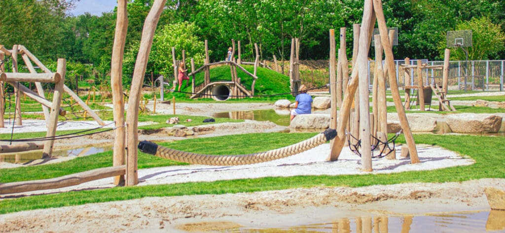Door te werken met duurzame en natuurlijke materialen, zoals hout, keien en zand, ontstaat een uitnodigende speelomgeving die past in elk landschap. Kinderen leren spelenderwijs over stroming, balans en samenwerking, terwijl ouders ontspannen toekijken.