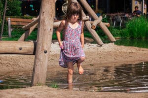 - Natuurlijke speelbeekjes met hoogteverschillen, zand en keien