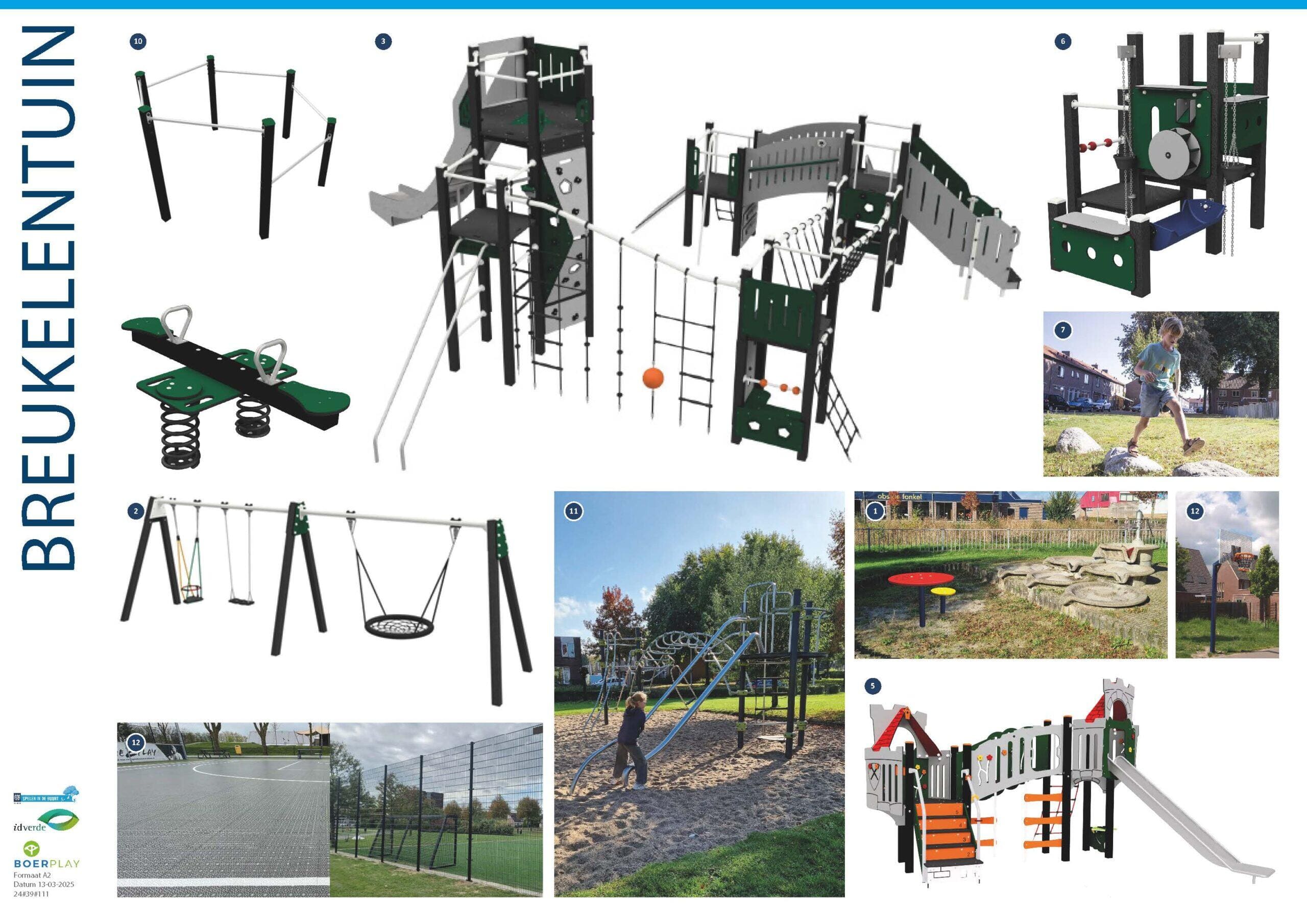 Wellicht is het je opgevallen, maar het grote combinatietoestel is nog een slag groter geworden dan in het eerste ontwerp. Er was een kans om een uniek en uitdagend toestel te plaatsen en dat hebben we dan ook gedaan! Net als het eerste voorstel kan je hier in klimmen, glijden en onder spelen. Maar het is ook een inclusiever toestel met een flauwe trap die mogelijkheden biedt voor kinderen die slechter ter been zijn om ook omhoog te klimmen en van de glijbaan te glijden.