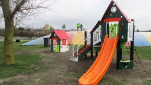 Material: Recycling-Kunststoff mit Orange Rutsche aus PolyesterAuf Anfrage