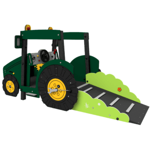 Werde zum echten Landwirt und bring deine Ernte rechtzeitig vor Einbruch der Dunkelheit ein – mit diesem knallroten Traktor! Die drehbaren Scheinwerfer sorgen dabei für klare Sicht. Achtung vor den scharfen Steinen auf dem Feld… zu spät, Reifen platt! Zum Glück hast du dein Werkzeug dabei und kannst den Reifen im Handumdrehen wechseln. Über die schräge Rampe hinten ist der Traktor auch für Rollstuhlfahrer gut zugänglich.