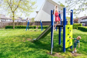 * Bei erzwungener Bewegung ist ein harter Untergrund ausgeschlossen und eine Falldämpfung ist ab einer Fallhöhe von 1,0 m erforderlich. Federelemente sind auf Gehwegen nicht erlaubt.