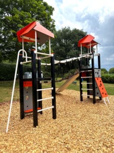 * Bei erzwungener Bewegung ist ein harter Untergrund ausgeschlossen und eine Falldämpfung ist ab einer Fallhöhe von 1,0 m erforderlich. Federelemente sind auf Gehwegen nicht erlaubt.