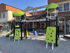 * Bei erzwungener Bewegung ist ein harter Untergrund ausgeschlossen und eine Falldämpfung ist ab einer Fallhöhe von 1,0 m erforderlich. Federelemente sind auf Gehwegen nicht erlaubt.