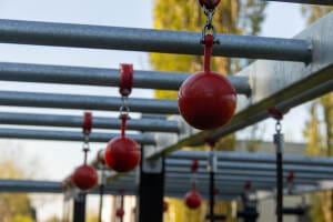 * Bei erzwungener Bewegung ist ein harter Untergrund ausgeschlossen und eine Falldämpfung ist ab einer Fallhöhe von 1,0 m erforderlich. Federelemente sind auf Gehwegen nicht erlaubt.