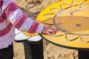 * Bei erzwungener Bewegung ist ein harter Untergrund ausgeschlossen und eine Falldämpfung ist ab einer Fallhöhe von 1,0 m erforderlich. Federelemente sind auf Gehwegen nicht erlaubt.