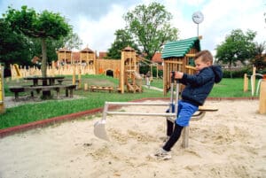 * Bei erzwungener Bewegung ist ein harter Untergrund ausgeschlossen und eine Falldämpfung ist ab einer Fallhöhe von 1,0 m erforderlich. Federelemente sind auf Gehwegen nicht erlaubt.