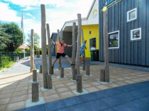 * Bei erzwungener Bewegung ist ein harter Untergrund ausgeschlossen und eine Falldämpfung ist ab einer Fallhöhe von 1,0 m erforderlich. Federelemente sind auf Gehwegen nicht erlaubt.