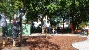 * Bei erzwungener Bewegung ist ein harter Untergrund ausgeschlossen und eine Falldämpfung ist ab einer Fallhöhe von 1,0 m erforderlich. Federelemente sind auf Gehwegen nicht erlaubt.