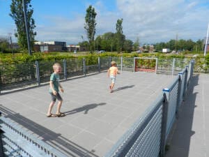 * Bei erzwungener Bewegung ist ein harter Untergrund ausgeschlossen und eine Falldämpfung ist ab einer Fallhöhe von 1,0 m erforderlich. Federelemente sind auf Gehwegen nicht erlaubt.