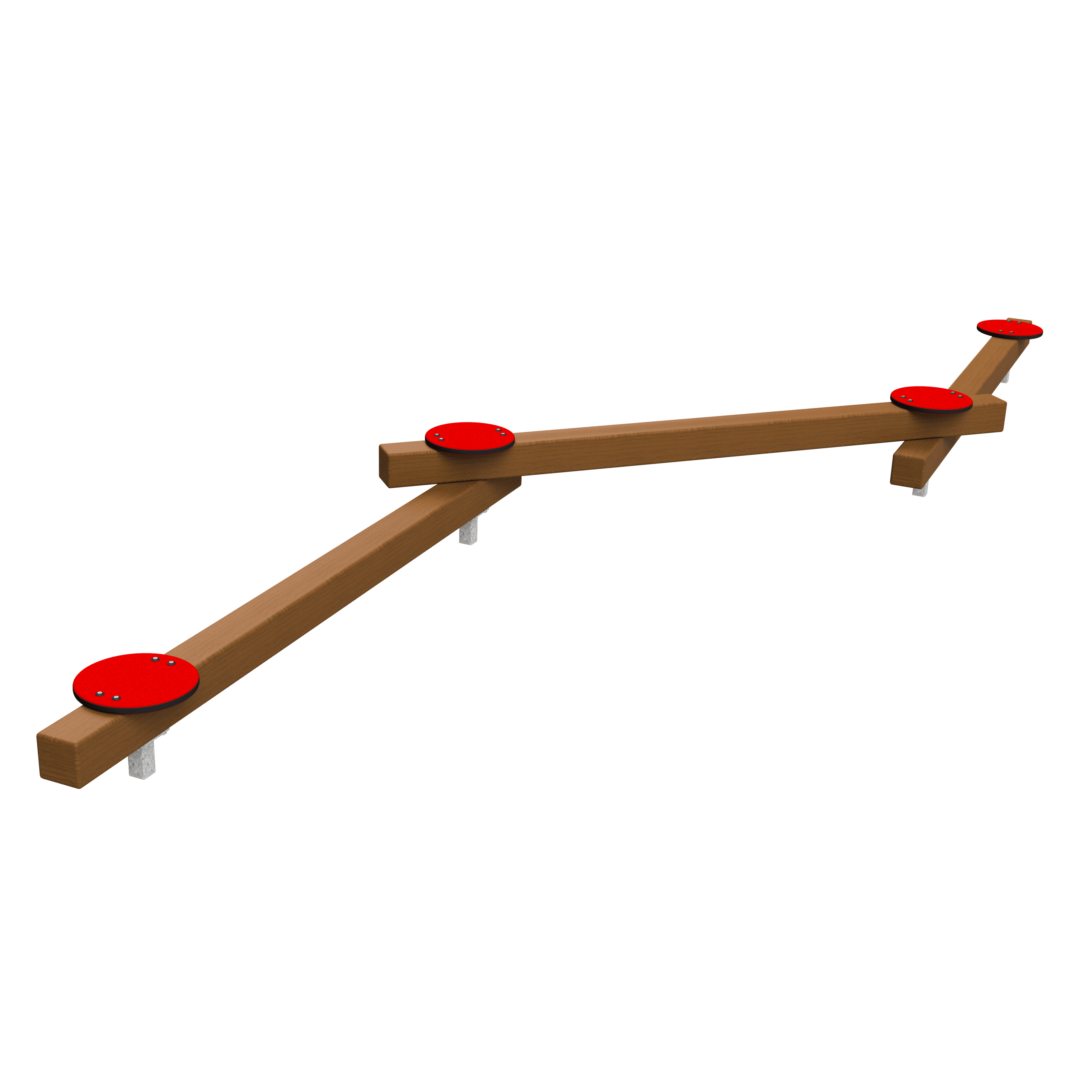 Eine grüne Umgebung mit viel Gras, Bäumen und Hecken. Der Weg durch den Spielplatz hat mehrere Funktionen; als Go-Kart-Bahn, zum Gehen und als Trennung zwischen dem Spielbereich für die etwas älteren Kinder und dem Spielbereich für die jüngeren Kinder.
