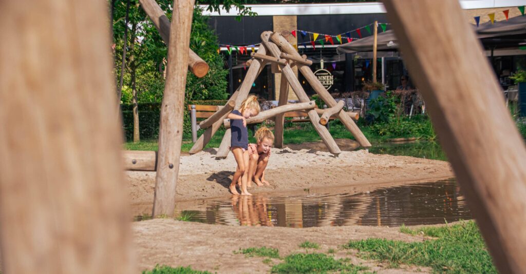 Climate adaptation means designing our surroundings in smarter ways to better cope with extreme weather, such as heat and heavy rainfall. After all, no one wants to spend time on a scorching hot schoolyard or live in a neighbourhood where water lingers after a storm. Vulnerable groups – like children and the elderly – are especially affected by high temperatures. Prolonged heat can even lead to health problems and hospital admissions. That’s why it’s important to make residential areas and school grounds cooler and more pleasant. With climate adaptation, we ensure our environments are more resilient – both now and in the future. Cities are dominated by concrete and asphalt – materials that trap heat and make outdoor play quite unpleasant. On sunny days, they can become unbearably hot. Many traditional playground surfaces, like black rubber tiles, also retain heat and raise surface temperatures even more. That’s why it’s better to choose sustainable materials like bark mulch or grass. These stay cool, making outdoor play far more enjoyable. Wooden play equipment heats up less than metal structures, so children can play freely without the risk of burns. A green-blue play area or schoolyard isn’t just more fun to play on – it also brings many benefits to the environment. By combining nature, water management and cooling elements, these spaces are perfectly suited to the challenges of a changing climate. A green play area is full of vegetation – trees, shrubs and grass strips. Not only does this create a more playful space, it also helps cool the environment. On a hot day, a well-designed play area can lower the temperature by up to 5°C! Trees offer natural shade, while grass and plants absorb less heat than hard surfaces. A smart choice: broad-canopied trees like lime or plane trees offer lots of shade with minimal maintenance. Native trees such as willows or fruit trees attract insects, birds and other wildlife, helping to boost biodiversity. And the best part? Children experience nature up close and learn about their environment through play. Smart water management makes play areas future-proof. Rainwater can be collected in grassy strips and swales, helping prevent flooding and keeping the ground moist, even during dry periods. Water play features not only provide cooling but also endless fun! Children love playing with water and sand – it gives them the freedom to explore and create. It stimulates their imagination and problem-solving skills. Green-blue play areas don’t just benefit the environment – they have a proven positive impact on child development. Studies show that natural play spaces boost creativity and imagination. Children learn through discovery and experience when surrounded by nature. Play areas with water and sand also support sensory and motor development. Feeling sand slip through their fingers, watching water flow, and exploring different textures helps children improve both fine and gross motor skills. Playing with natural elements also enhances creativity, cognitive development and the ability to solve problems. Altogether, this contributes to their overall well-being and helps them better understand the world around them. Not every play area can be transformed into a fully climate-resilient space all at once. Fortunately, there are plenty of clever ways for local councils, recreational areas and schools to start making improvements step by step. Adding shade sails or planting trees can be a great first step towards a cooler, more comfortable play climate. Replacing hard surfaces with natural materials like bark mulch or grass can also be done gradually. At BOERplay, we support long-term planning by helping design phased transformations – so a play area can become an inspiring, heat-resistant space without requiring a large upfront budget. Many councils also offer grants and subsidies for green-blue play areas and climate-adaptive solutions. We’re happy to help – we’ve already done the research for you! As we said: it’s time to take action. By including heat stress solutions in the design of a play area from the outset, we can create spaces where children can play safely and comfortably all year round. With greenery, water features and smart materials, play areas become more inviting and contribute to biodiversity, water retention and healthier communities. Looking for a sustainable play area that stimulates children and stands up to heat? Our advisors are happy to help – get in touch and explore the possibilities! What is climate adaptation?