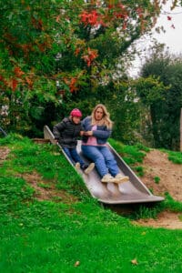 - Wide slides with gentle inclines, so parents or peers can slide together with children needing extra support