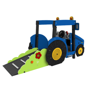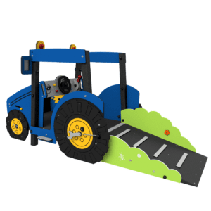 Feel like a real farmer in the field and race to harvest your crops before night falls on this bright red tractor! Thanks to the rotating headlights, you'll have a clear view at all times. But watch out for those sharp rocks… oh no, too late – a flat tyre! No worries – you've got your tools ready to fix it quickly. The sloped ramp at the back makes the tractor easily accessible for wheelchair users too.
