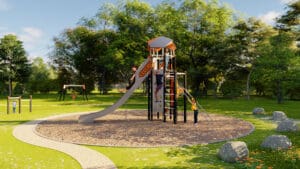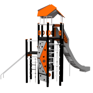 The Combination equipment "Emerald" offers several climbing routes with increasing levels of difficulty, challenging children to push their limits. The steep slide, which reaches as high as three metres, offers a spectacular descent for the real daredevils. Thanks to its adventurous nature, extensive play options and eco-friendly design, the Emerald is a favourite with youngsters!