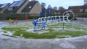 | Fall height | Grass ** | Pavement (concrete, asphalt, etc.) | Rubber Cast floor | EPDM Tiles | Doorgroeitegels | Artificial grass | Tiger Mulch® | Sand *** | Wood chips/ Dekowood *** | Bark *** |