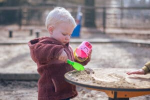 Nach all dem Drehen, Schwingen, Klettern und Krabbeln ist es höchste Zeit, sich auszuruhen und einen schönen Sandkuchen zu essen. Das könnt Ihr an unserem (Picknick-)Tisch Sonne tun. Er kann auch mit Stuhl, Blume und Stuhlmuschel kombiniert werden.