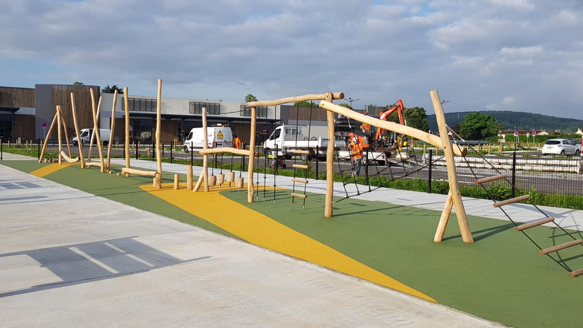 The Robinia Adventure Play climbing course and the double swing on this beautiful playground offer challenge and lots of fun for children from 2 to 12 years.