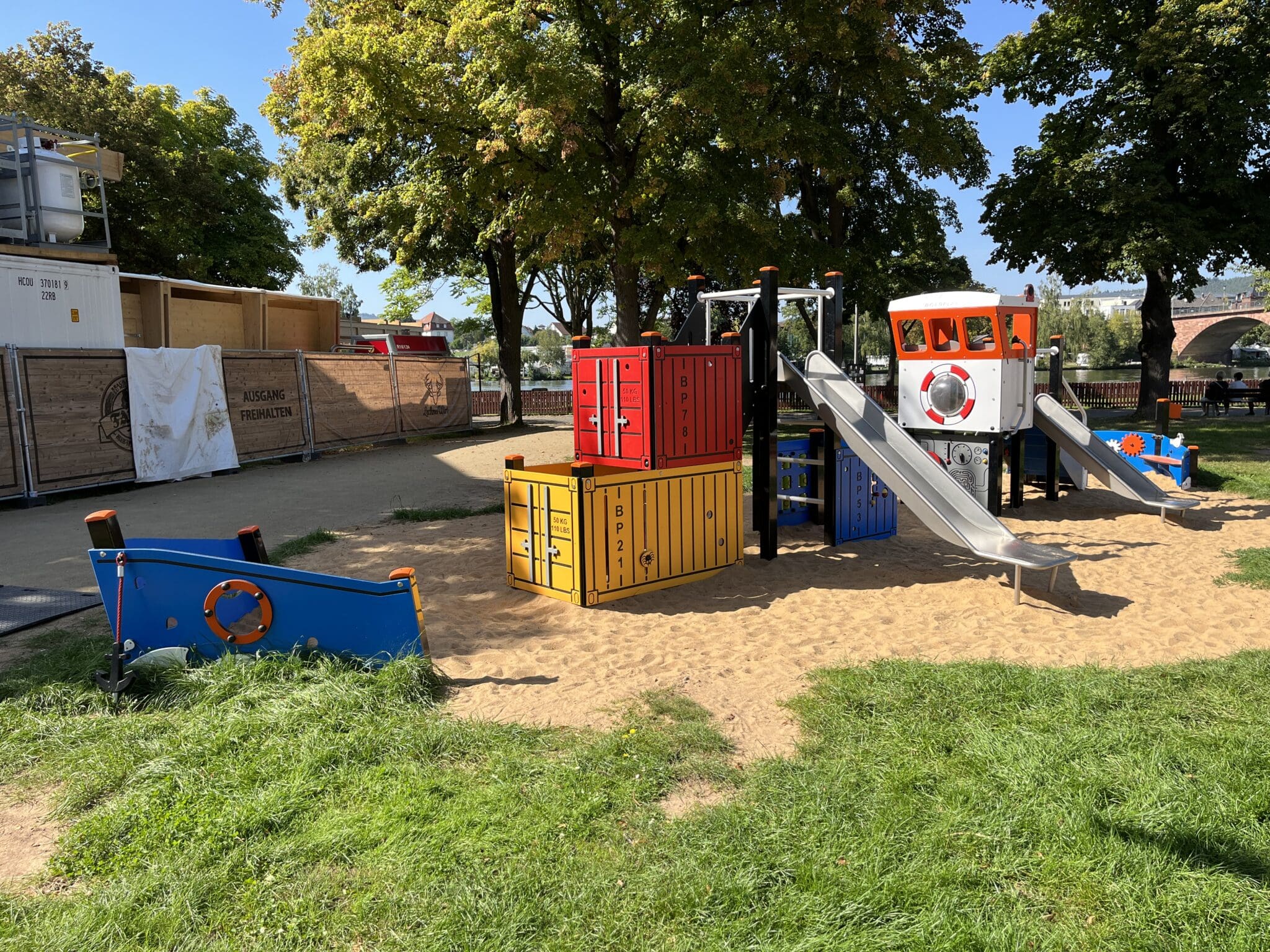 Tu es le capitaine du porte-conteneurs Rotterdam et responsable de la libération en toute sécurité de ton chargement. Fais appel à tes meilleurs marins pour t’aider à acheminer les conteneurs maritimes jusqu'au port. Est-ce que tout est sécurisé et en place ? Emprunte les escaliers, monte sur les côtés des conteneurs et surtout : n'oublie pas de haler l'ancre avant de partir ! Équipé de toboggans en polyester et de poteaux noirs en plastique recyclé. Ohé du bateau !