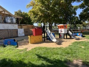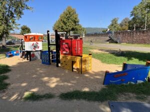 Tu es le capitaine du porte-conteneurs Rotterdam et responsable de la libération en toute sécurité de ton chargement. Fais appel à tes meilleurs marins pour t’aider à acheminer les conteneurs maritimes jusqu'au port. Est-ce que tout est sécurisé et en place ? Emprunte les escaliers, monte sur les côtés des conteneurs et surtout : n'oublie pas de haler l'ancre avant de partir ! Équipé de toboggans en inox et de poteaux noirs en plastique recyclé. Ohé du bateau !