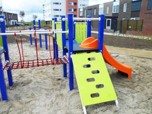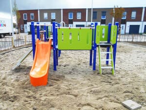 Matériel: Gerecycled kunststof met glijbaan polyester blauwSur demande