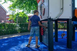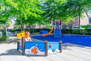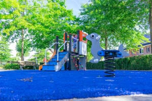 * Indien sprake er is van een gedwongen beweging, is een harde ondergrond uitgesloten en is valdemping voor ten minste 1,0 m valhoogte noodzakelijk. Veerelementen mogen niet op verharding.