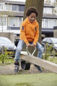 * Indien sprake er is van een gedwongen beweging, is een harde ondergrond uitgesloten en is valdemping voor ten minste 1,0 m valhoogte noodzakelijk. Veerelementen mogen niet op verharding.