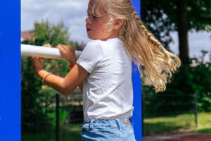* Indien sprake er is van een gedwongen beweging, is een harde ondergrond uitgesloten en is valdemping voor ten minste 1,0 m valhoogte noodzakelijk. Veerelementen mogen niet op verharding.