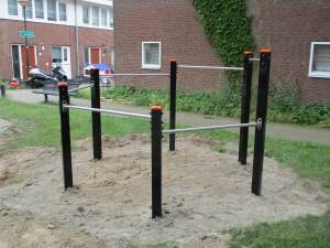 * Indien sprake er is van een gedwongen beweging, is een harde ondergrond uitgesloten en is valdemping voor ten minste 1,0 m valhoogte noodzakelijk. Veerelementen mogen niet op verharding.