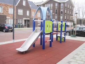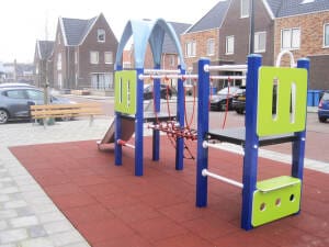 * Indien sprake er is van een gedwongen beweging, is een harde ondergrond uitgesloten en is valdemping voor ten minste 1,0 m valhoogte noodzakelijk. Veerelementen mogen niet op verharding.