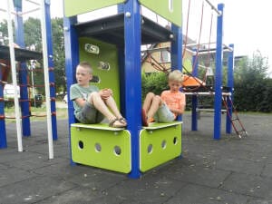 * Indien sprake er is van een gedwongen beweging, is een harde ondergrond uitgesloten en is valdemping voor ten minste 1,0 m valhoogte noodzakelijk. Veerelementen mogen niet op verharding.