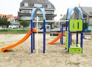 * Indien sprake er is van een gedwongen beweging, is een harde ondergrond uitgesloten en is valdemping voor ten minste 1,0 m valhoogte noodzakelijk. Veerelementen mogen niet op verharding.
