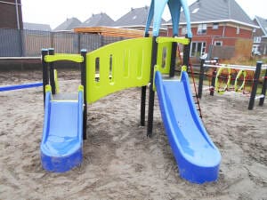 * Indien sprake er is van een gedwongen beweging, is een harde ondergrond uitgesloten en is valdemping voor ten minste 1,0 m valhoogte noodzakelijk. Veerelementen mogen niet op verharding.