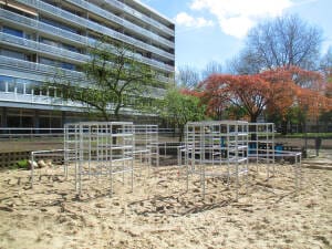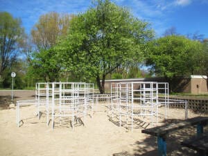 * Indien sprake er is van een gedwongen beweging, is een harde ondergrond uitgesloten en is valdemping voor ten minste 1,0 m valhoogte noodzakelijk. Veerelementen mogen niet op verharding.