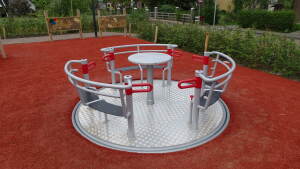 De rolstoeldraaimolen is door iedereen te gebruiken, maar zeker door kinderen in een rolstoel. Een must voor op een inclusieve speelplaats!