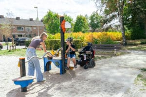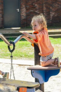 * Indien sprake er is van een gedwongen beweging, is een harde ondergrond uitgesloten en is valdemping voor ten minste 1,0 m valhoogte noodzakelijk. Veerelementen mogen niet op verharding.