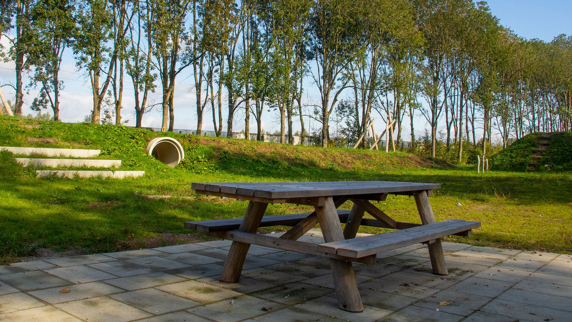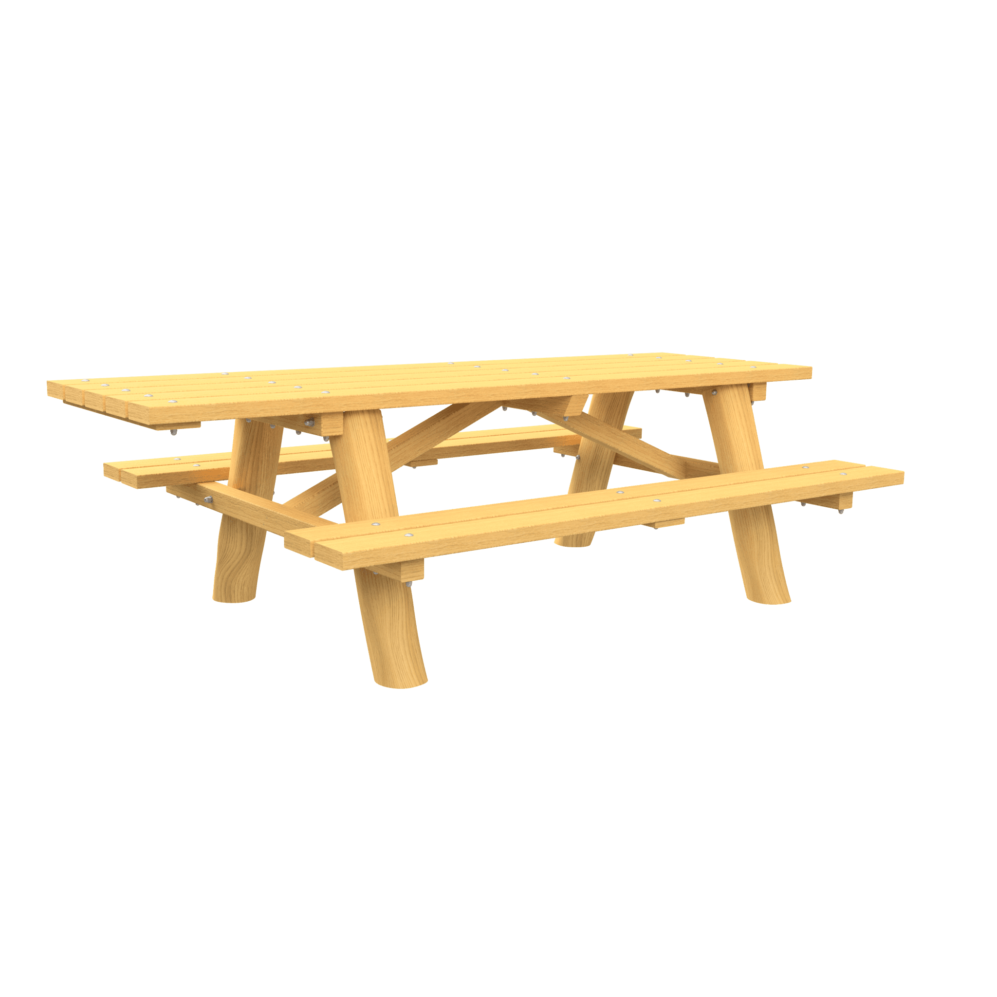 Deze picknickset heeft een rolstoelplaats aan kop van de tafel, waar het tafelblad is verlengd.