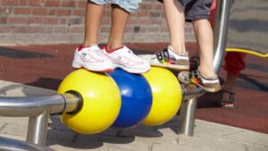 * Indien sprake er is van een gedwongen beweging, is een harde ondergrond uitgesloten en is valdemping voor ten minste 1,0 m valhoogte noodzakelijk. Veerelementen mogen niet op verharding.