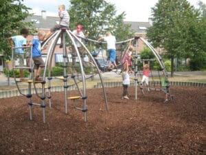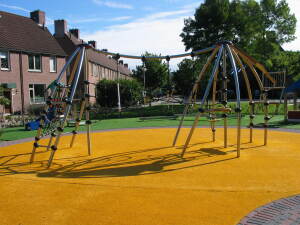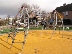* Indien sprake er is van een gedwongen beweging, is een harde ondergrond uitgesloten en is valdemping voor ten minste 1,0 m valhoogte noodzakelijk. Veerelementen mogen niet op verharding.