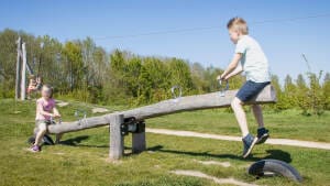 * Indien sprake er is van een gedwongen beweging, is een harde ondergrond uitgesloten en is valdemping voor ten minste 1,0 m valhoogte noodzakelijk. Veerelementen mogen niet op verharding.