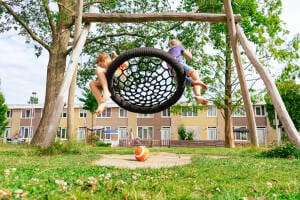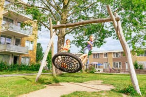 * Indien sprake er is van een gedwongen beweging, is een harde ondergrond uitgesloten en is valdemping voor ten minste 1,0 m valhoogte noodzakelijk. Veerelementen mogen niet op verharding.