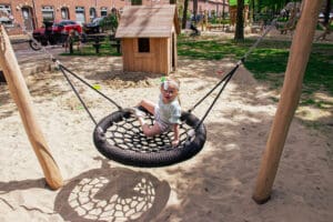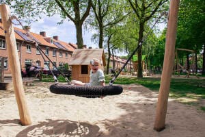 * Indien sprake er is van een gedwongen beweging, is een harde ondergrond uitgesloten en is valdemping voor ten minste 1,0 m valhoogte noodzakelijk. Veerelementen mogen niet op verharding.